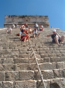 «Если вы думаете, что «Эмердженси» приедет вам на помощь-то вы глубоко ошибаетесь. Парамедики приедут только для того, чтобы констатировать вашу смерть!»,-под сопровождением таких напутствий нашего экскурсовода, я уже начала колебаться: стоит ли рисковать жизнью ради того, чтобы скарабкаться на вершину мексиканских пирамид?