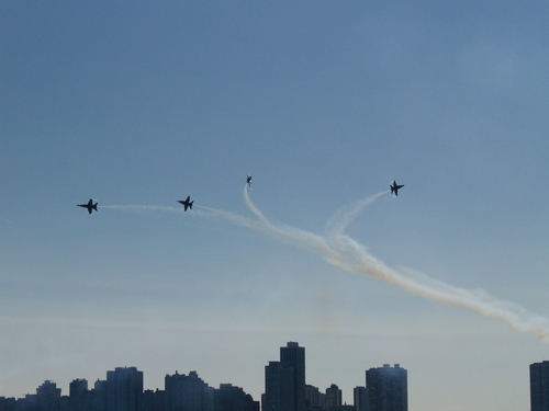 Враження було вражаючим: над височенними хмарочосами літали витончені і неймовірно швидкі знаряддя смерті. І хоча такі шоу проводяться в Чикаго вже декілька років підряд, після торнадо, котре ми зі здивуванням пережили в Чикаго лише тиждень тому, війни в Грузії, безконечного конфлікту з Іраком і можливого нового конфлікту з Іраном, думки щодо доцільності проведення такого шоу у небі над багатомільйонним містом були дуже кардинальними, і здебільшого зводилися до одного: вражає, але дорого і небезпечно. Адже позаминулого року ми випадково уникнули трагедії, коли після показового польоту одного з винищувачів, літак втратив одну з бойових (!) ракет, котра, на щастя, впала в озеро Мічіган.