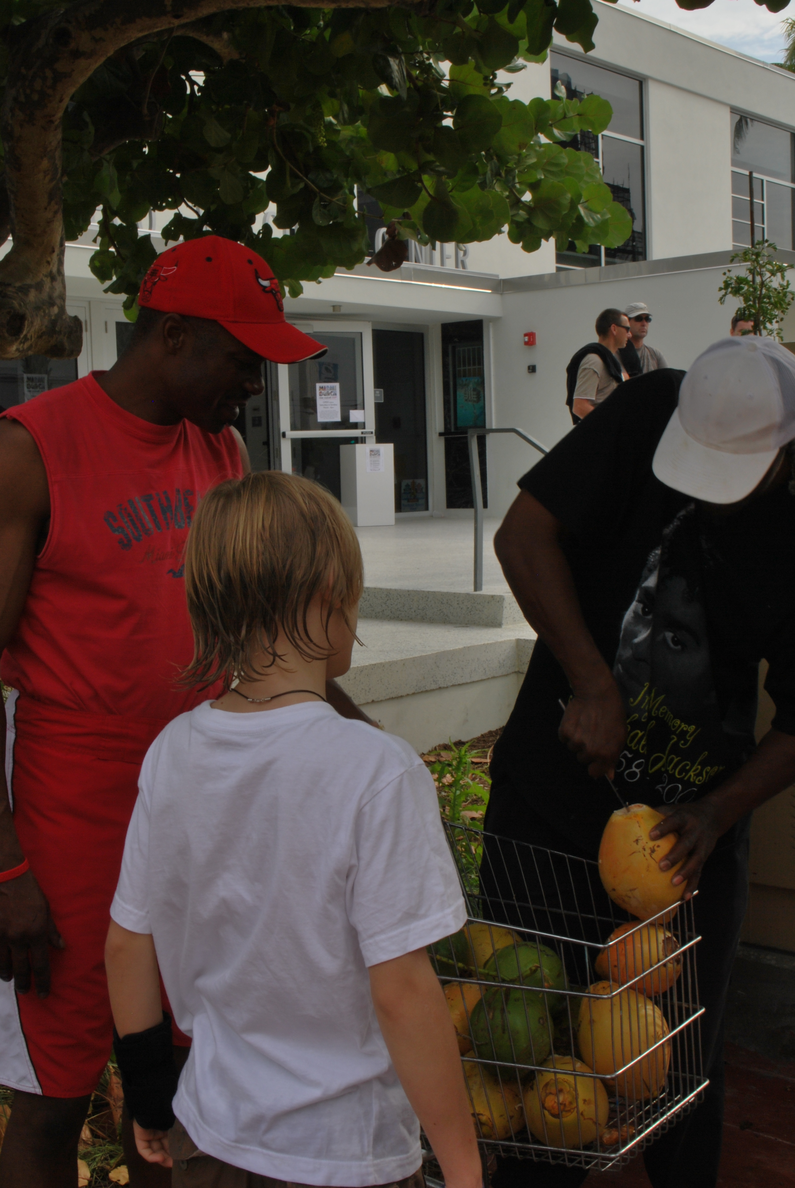 На обочине магистрали, в фешенебельном районе города Форт Лаутердейл, в ожидании подачек от местных «санта клаусов» сидит чёрнокожий бомж в зелёных туфлях с маленькими колокольчиками на носках и в красно-белой шапке, в то время  как его более предприимчевые собратья сшибают палками кокосы и продают их местным туристам по $3 за штуку, при этом предусмотрительно сняв кожуру на верхушке и вставив трубочку для питья. В жаркую погоду сок кокоса прекрасно тонизирует и охлаждает, поэтому отбоя от желающих у них не бывает. В багажнике нашей машины до сих пор гниёт один из опустошеных кокосов, которого Сашка отказался выбрасывать и решил оставить себе на память, а Зязя сразу же перефразировал песню Пьера Нарциса о «шоколадном зайце» под «Я — коконатный заяц!»