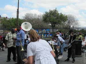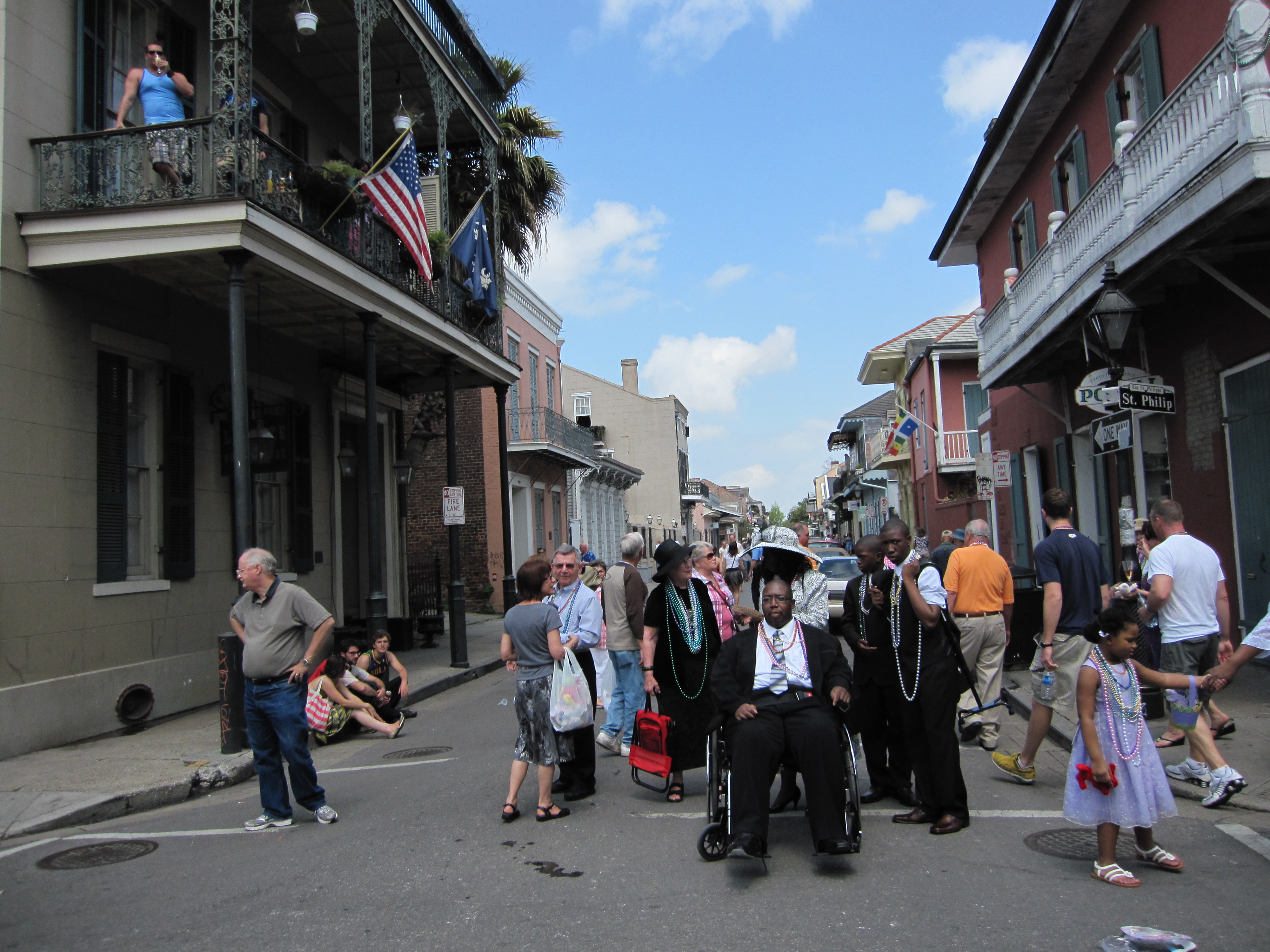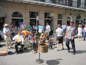 И почти что в каждом проулке звучит живая музыка. Играют все: от 80-летней бабушки на клавесине, обвешаной гирляндой гавайских цветов-до панка с заячьими ушками (ведь сегодня-Пасха!)-до профессионального джаз-квинтета. При этом чернокожие музыканты ТАК ИГРАЮТ И ПОЮТ, что ты себя с трудом заставляешь идти дальше. А там танцует зажигательные сексопильные танцы дуэт, при этом служа только зрительным аккомпаниентом другому джаз-квартету.