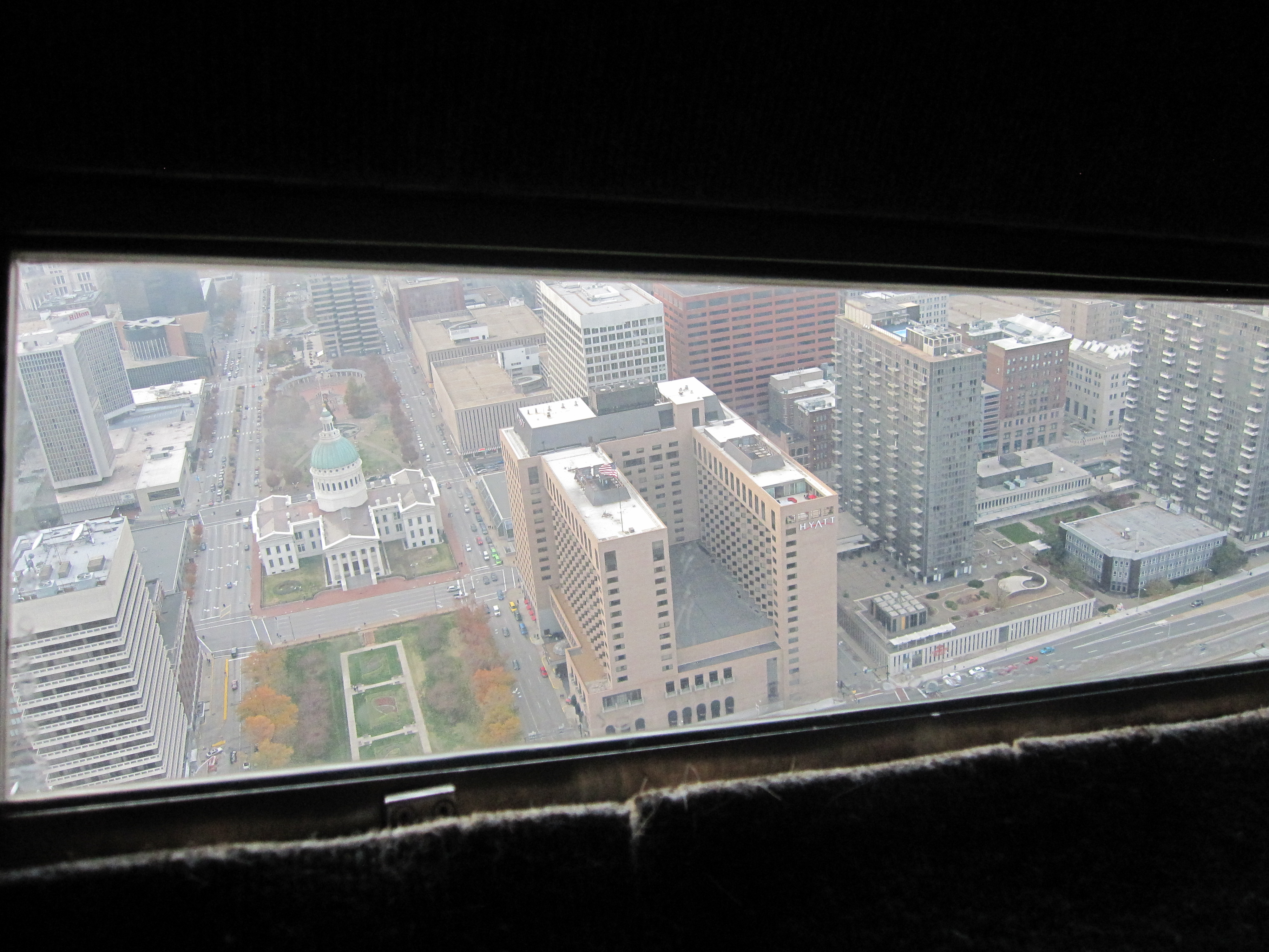 Колесики медленно отсчитывали уровни и ступеньки и казалось, что дороге не будет конца. Честно говоря, я уже начала подумывать, что это маленькое клаустробическое пространство и является главным гвоздем програмы, как вдруг дверь открылась и мы вылезли на волю. Голодные к зрелищам туристы рванули к смотровым окнам, с которых открывался вид на Сент Луис.