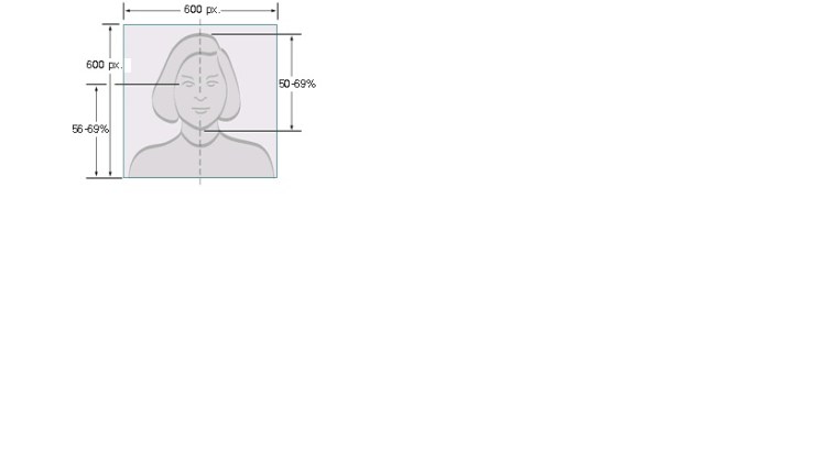 *Голова фотографируемого должна занимать приблизительно от 50-ти до 69-ти процентов изображения по высоте. Глаза должны находиться на уровне от 56-ти до 69-ти процентов от полной высоты изображения (Это расстояние между нижним краем изображения и линией расположения глаз).
