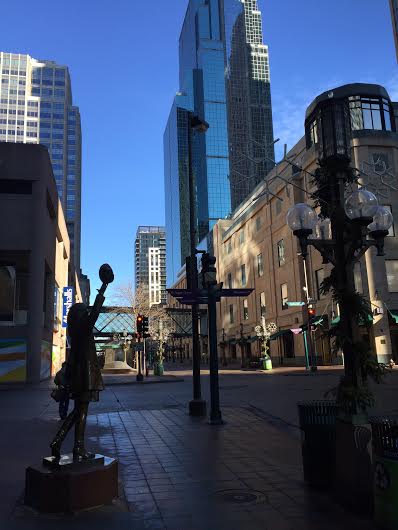 Захожу в один из стеклянных многоэтажных домов и поднимаюсь на эскалаторе вверх: туда, где начинается настоящая «поднебесная». Почти что все дома и государственные учреждения даунтауна соедены между собой хитросплетенными стеклянными переходами, и ты блуждаешь ими, как лабораторная крыса, которая думает, что она человек. Ведь в середине лабиринта есть много чем поживиться: вкусняшки из местных ресторанов и кафе, спа-салоны, магазины и шопинг-центры. Но в конце пути ты неминуемо за это заплатишь: процентами по кредитных карточках либо лишними сантиметрами талии.